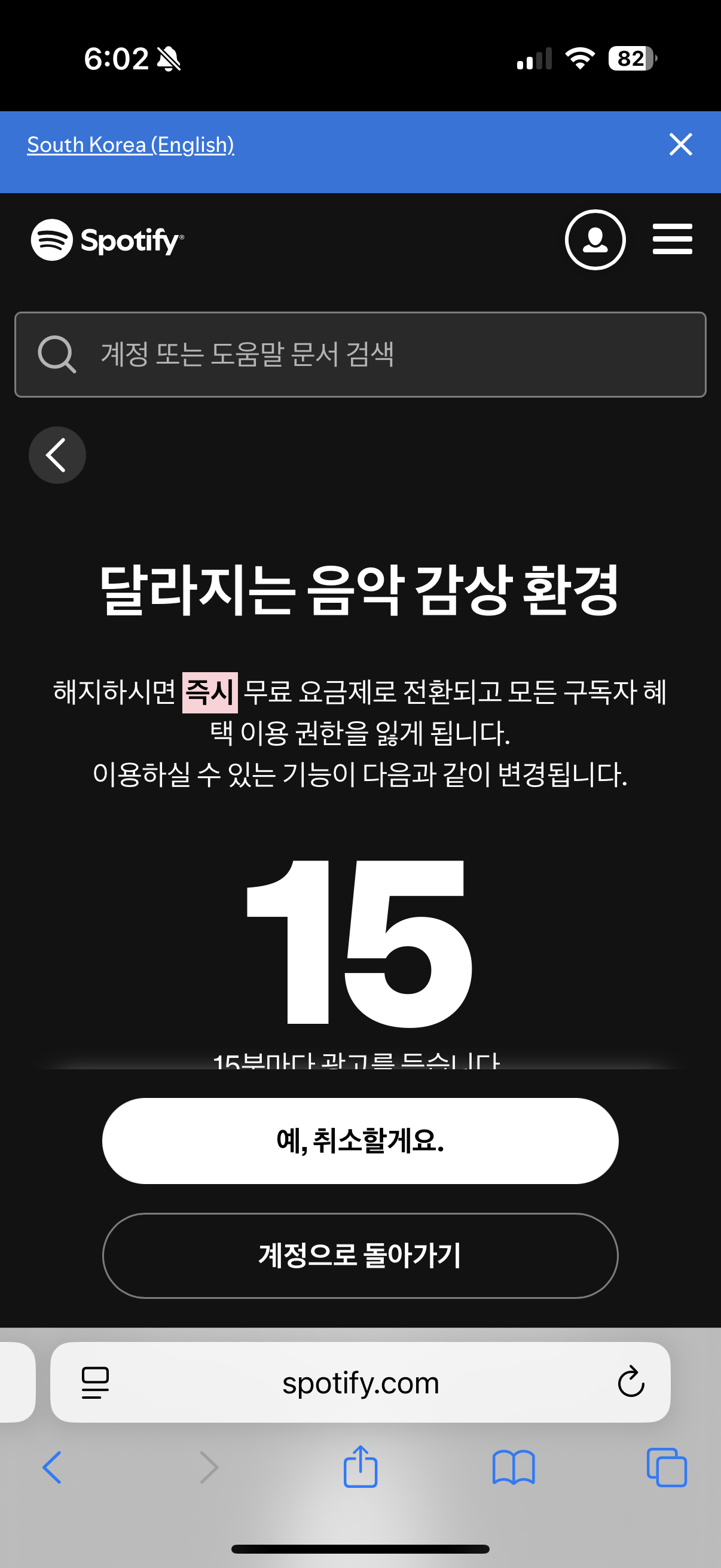 이럴 때는 스포티파이 웹사이트에서 직접 취소해야 해요. 아이폰에서도 사파리나 크롬으로 접속하면 되니까 걱정 마세요.